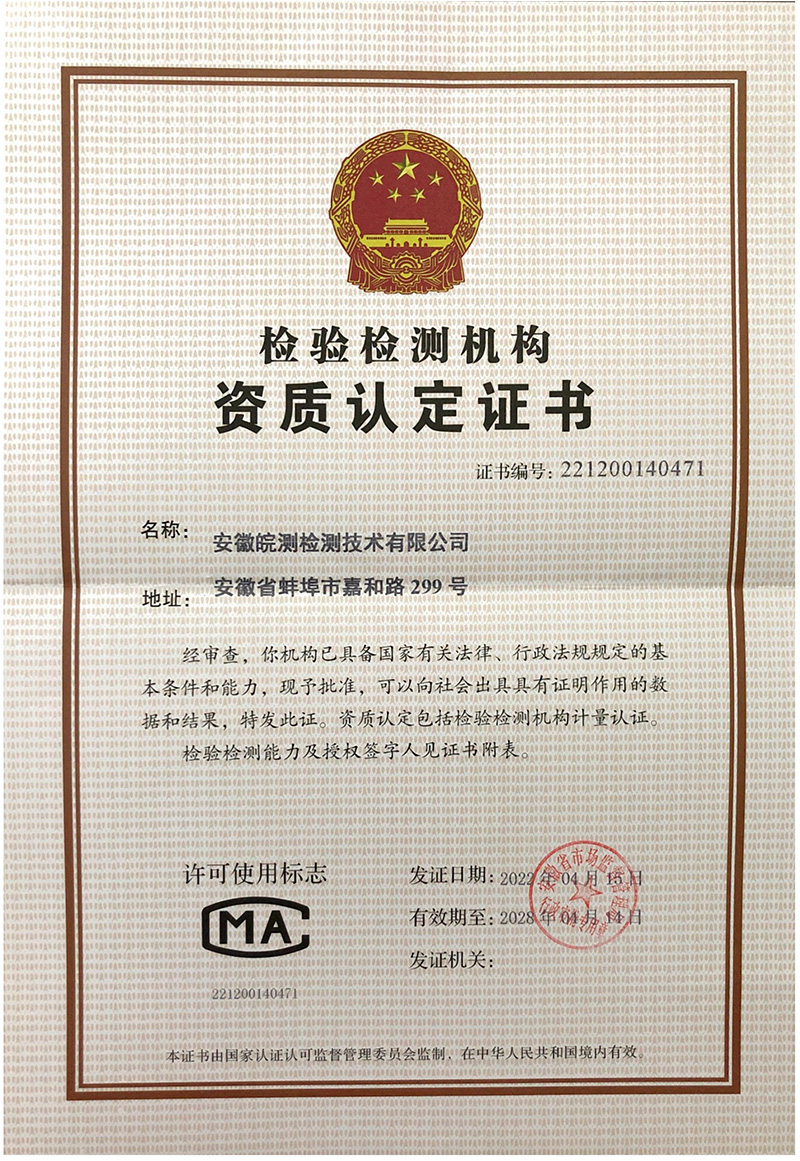 CMA證書-安徽皖測(cè)檢測(cè)技術(shù)有限公司